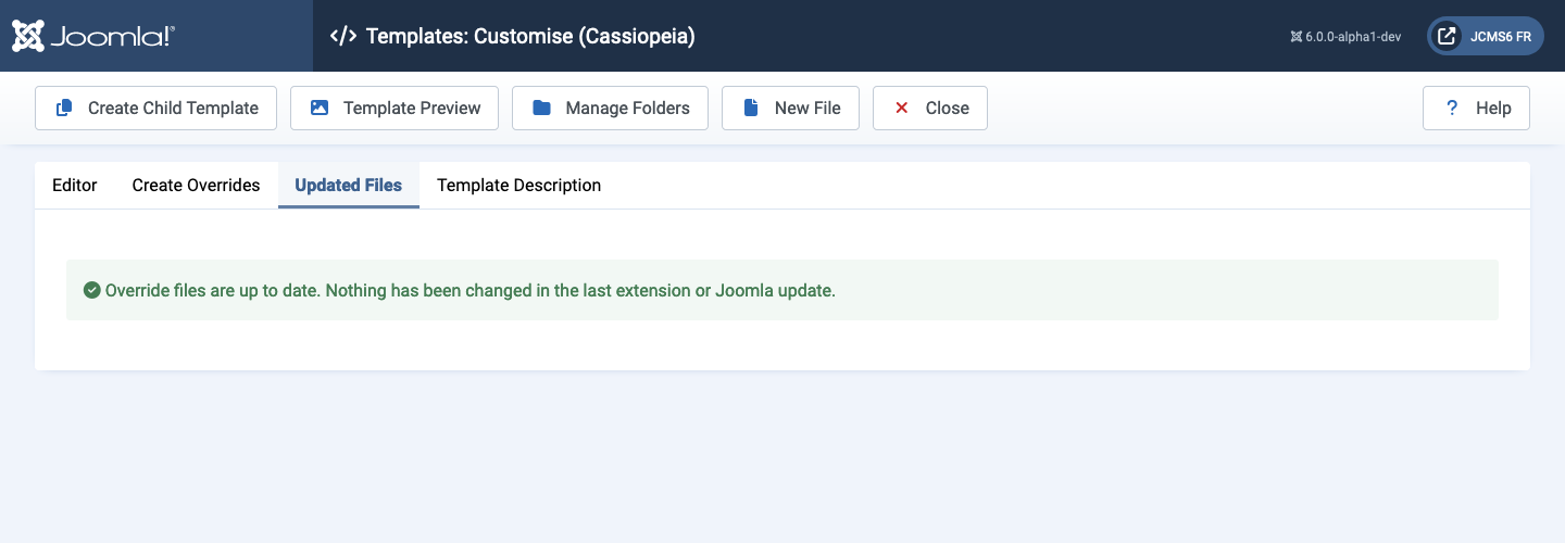 If there have been no updates to the template since overrides were created this tab will contain a simple message: